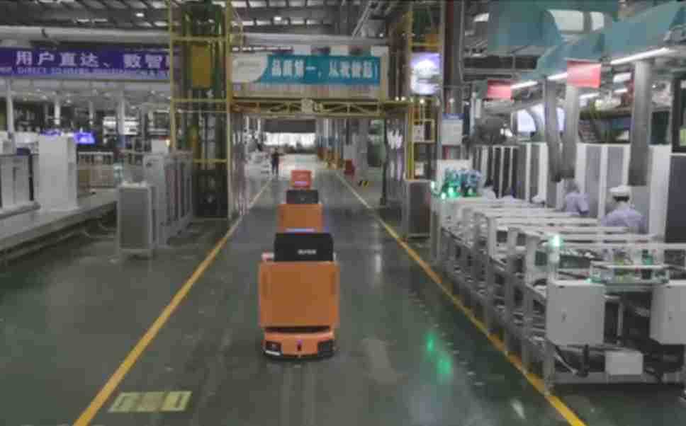 为车载冰箱物流配送打造的智能解决方案,,包含产中物流通过潜伏举升AMR搬运至线边,,,,产后成品物流智能仓储,,流程包含产中物流智能齐套入库,,,线边安灯叫料AMR智能配送至线边,,,,成品入库、、出库,,,通过无人堆高车机器人,,,,智能仓储管理替代人工作业管理,,,实现更高存储、、、更高效率、、、更具柔性化的解决方案。。。。