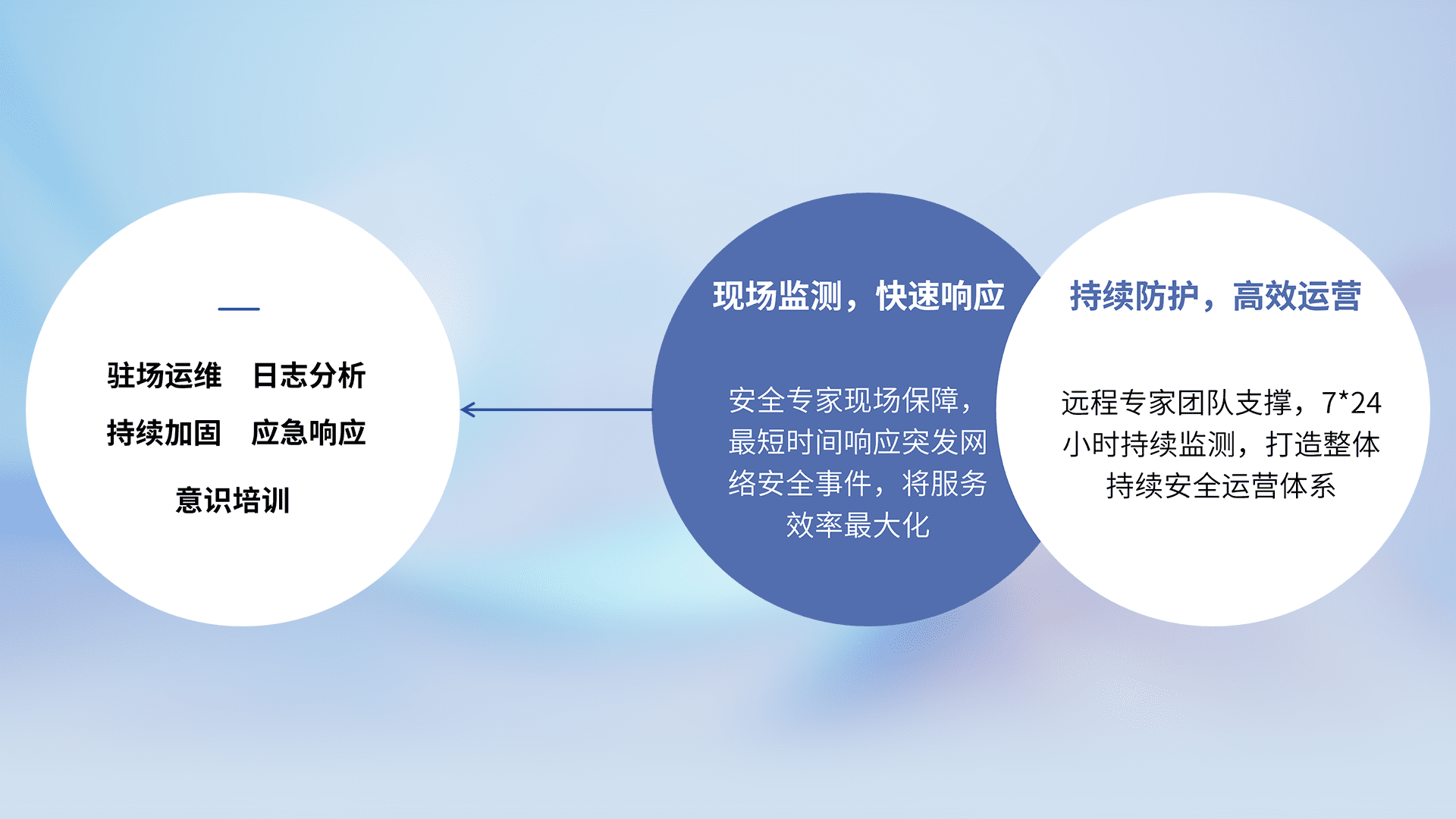 针对客户行业特性,,提供专属的一站式安全管理服务,,,,帮助客户全面感知网络空间威胁,,通过安全专家的线上、、、、线下防护支持,,实现风险闭环,,,,将安全保障常态化,,,为客户打造常态化安全运维运营服务。。。。